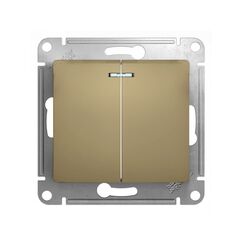 Двухклавишный выключатель с подсветкой и изоляцией, для надежного и удобного управления освещением, монтаж в стандартный подрозетник.