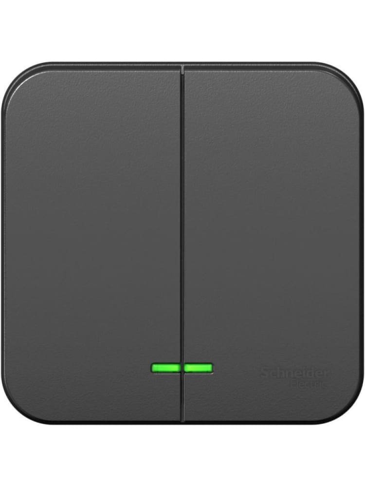 Выключатель 2-клавишный О/У с изолирующей пластиной, с подсв. 10А, 250В, сх.5, антрацит Blanca SE