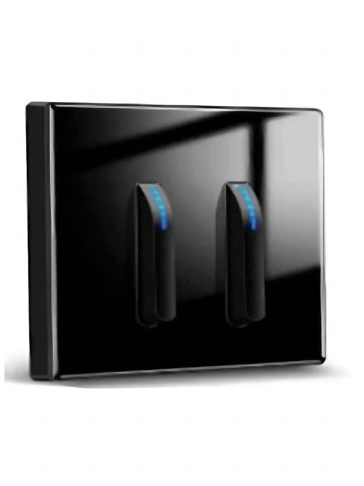 Стильный и надежный двойной выключатель в черном цвете идеально впишется в современный интерьер жилых и коммерческих помещений, обеспечивая комфортное управление освещением двух зон из одной точки.