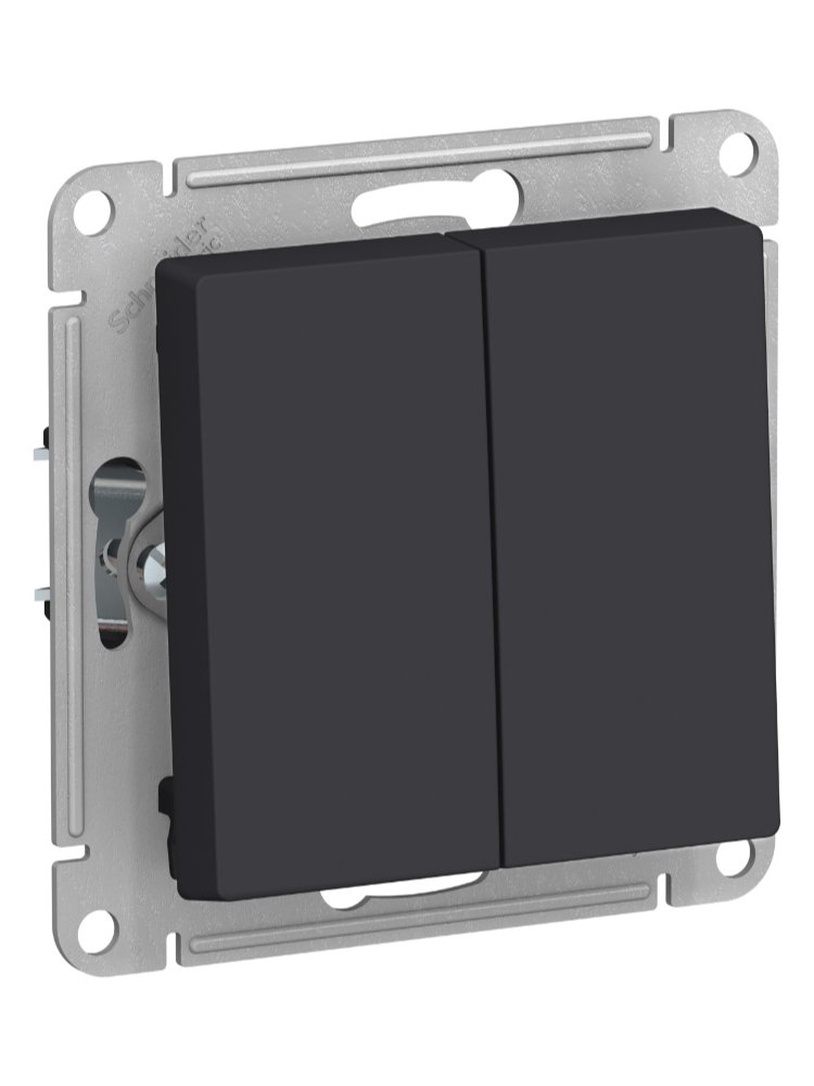 Универсальный двухклавишный механизм из коллекции "AtlasDesign SE" в цвете "карбон" идеально подойдет для жилых и коммерческих помещений: от квартир и домов до офисов и гостиниц.