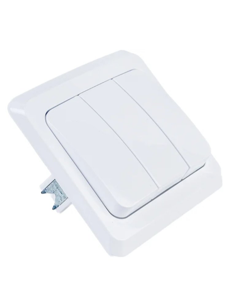 Трёхклавишный выключатель идеально подходит для управления освещением в жилых, офисных и коммерческих помещениях. Простая установка накладным способом облегчает монтаж даже в уже готовых интерьерах.