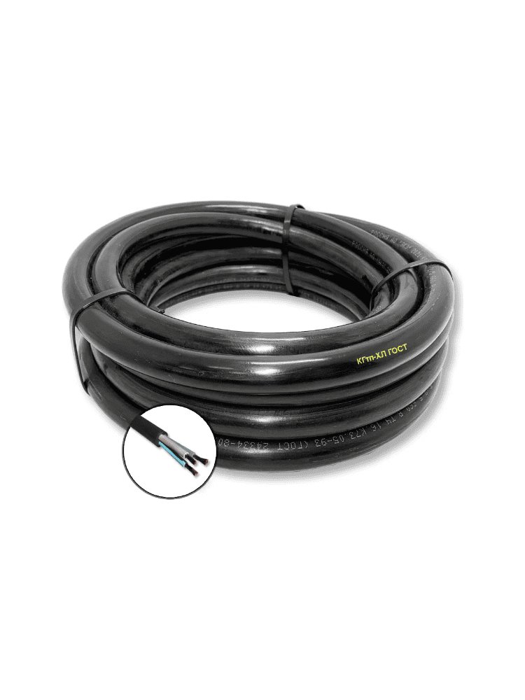 Силовой гибкий холодостойкий кабель КГ-ХЛ предназначен для эксплуатации на суше, реках и озёрах в районах с умеренным, холодным климатом, как на открытом воздухе, так и в помещениях. Медный кабель КГ-ХЛ предназначен для соединения подвижных механизмов к электрическим сетям с переменным напряжением до 660 Вольт частотой до 400 Герц или при постоянном напряжении 1000 В. Этим кабелем можно прокладывать временные линии электропитания строительных объектов, запитывать инструмент и оборудование. Следует помнить, что кабель КГ-ХЛ не предназначен для применения на подъемно-транспортном оборудовании. Изоляция и оболочка из термоэластопласта. Гибкий морозостойкий кабель для энергоснабжения в суровых условиях, выдерживает температуры до -60°C, устойчив к износу, влаге и маслам.
