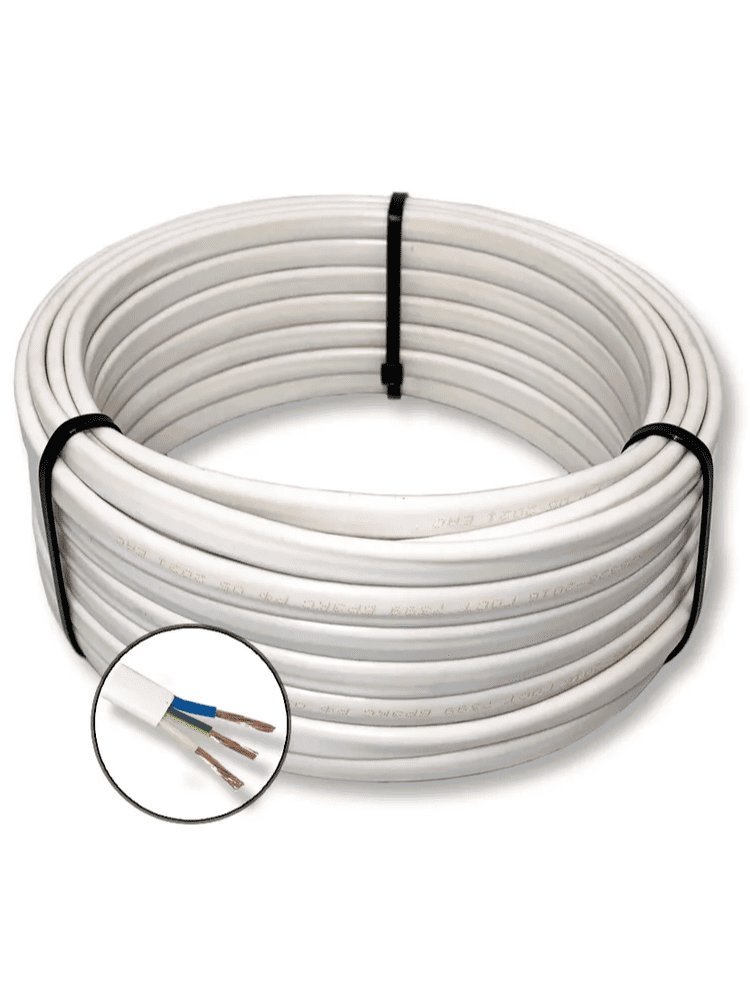 - Три медные жилы сечением 0,75 мм² обеспечивают надежную работу при напряжении до 380 В и токе до 6 А.