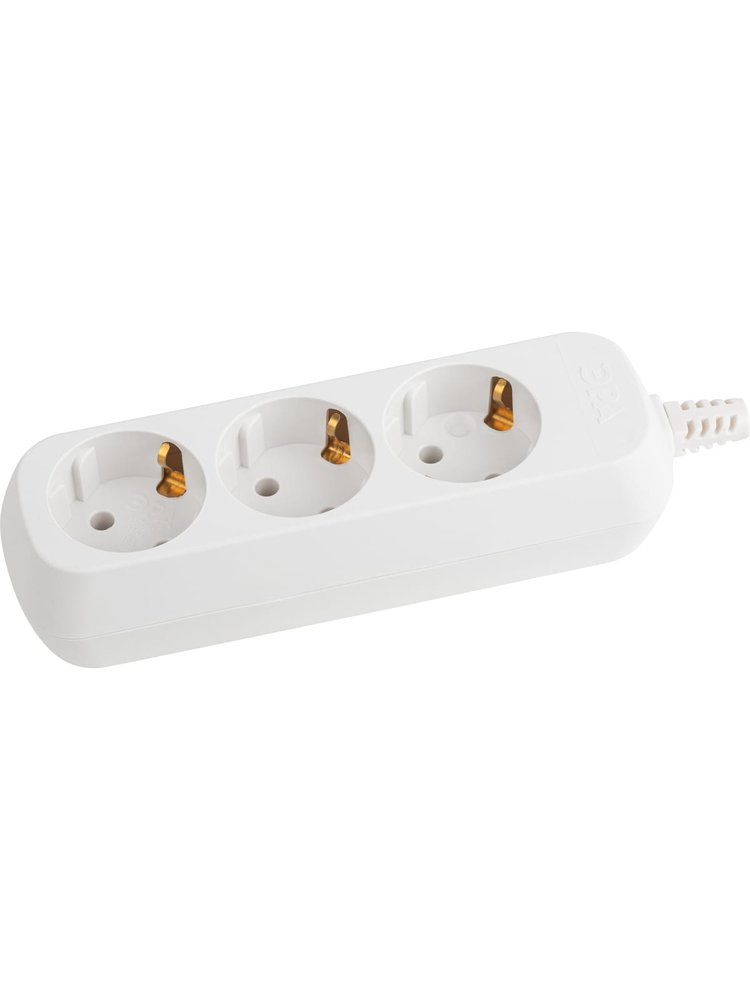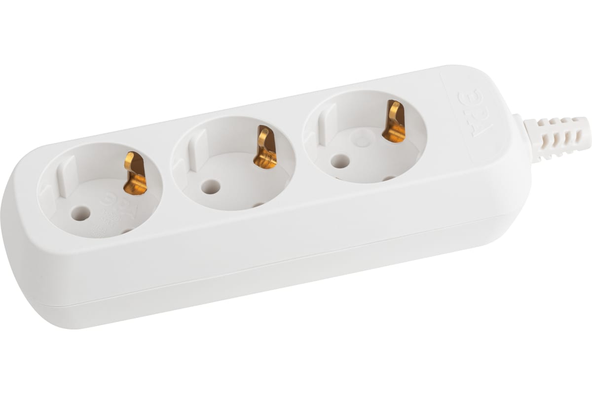 Три гнезда с заземлением, ток 16А, надежная защита и устойчивый корпус — для подключения мощной техники дома или на стройке.