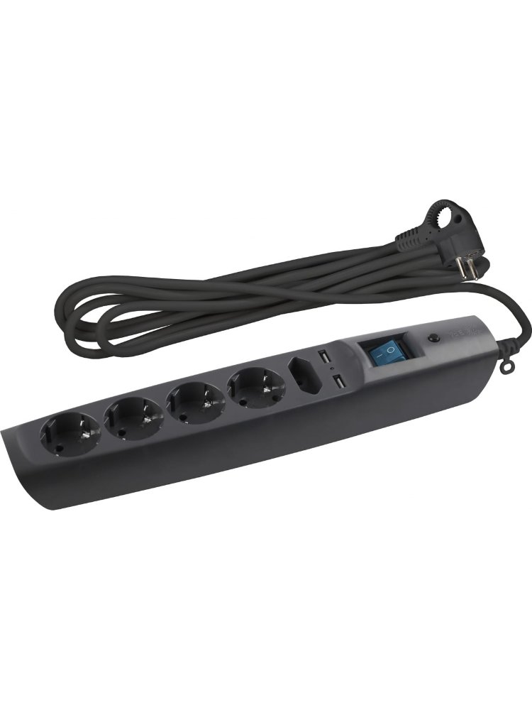 Фильтр сетевой 5 гнезд 2м с з/к 10А 1 USB, 1 TypeC черный(выс.ур.защ.) ЭРА в Амурск
