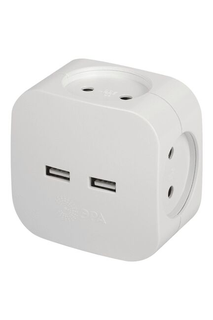 Разветвитель электрический 4 гнезда (четверник) без з/к 10А 2 USB белый ЭРА