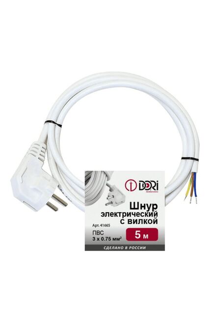 Шнур с вилкой 5м белый ПВС 3*0,75 в Амурск