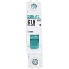 Однополюсный автомат 16А, характеристика C, номинальный ток 4,5кА, для защиты электрических цепей от короткого замыкания и перегрузок.