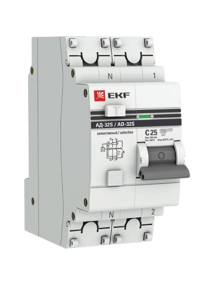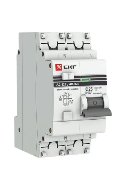 Автомат дифференциальный АД-32 1P+N 25А 30мА EKF PROxima для защиты от перегрузок и утечек тока. Прочный корпус, монтаж на DIN-рейку, для бытовых и коммерческих сетей.