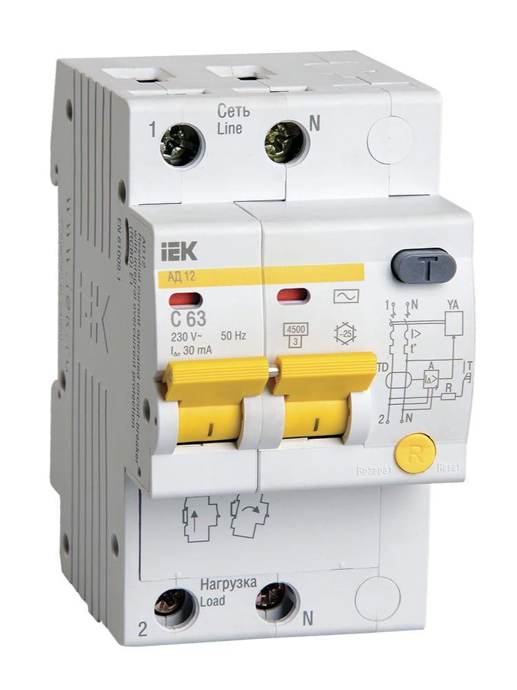 Автомат дифференциальный АД12 2Р 63А 30мА IEK