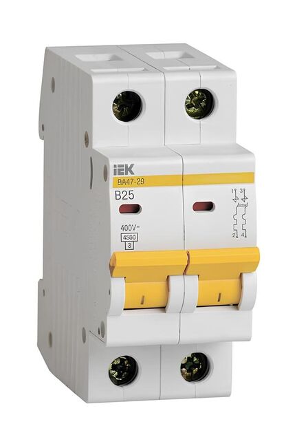 Однополюсный автомат 25А, тип B, отключающая способность 4,5 кА, быстро защищает цепи от перегрузок и коротких замыканий, удобный монтаж на DIN-рейку.
