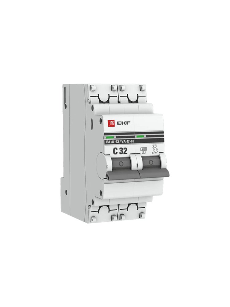 Автоматический выключатель 2P 32A (C) 4,5кА EKF PROxima для защиты цепей от перегрузок и замыканий. Подходит для бытовых и коммерческих сетей до 400 В.
