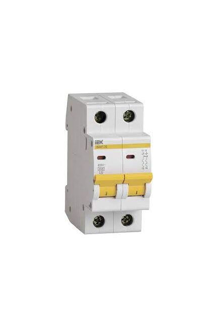 Двухполюсный, ток 32А, характеристика C, отключающая способность 4,5кА, для защиты от коротких замыканий и перегрузки, установка на DIN-рейку.