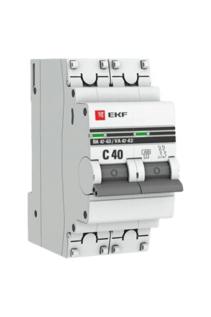Автоматический выключатель 2P 40A (C) 4,5кА EKF PROxima BA47-63 для защиты цепей от перегрузок и КЗ. Надежный, с удобным монтажом на DIN-рейку.