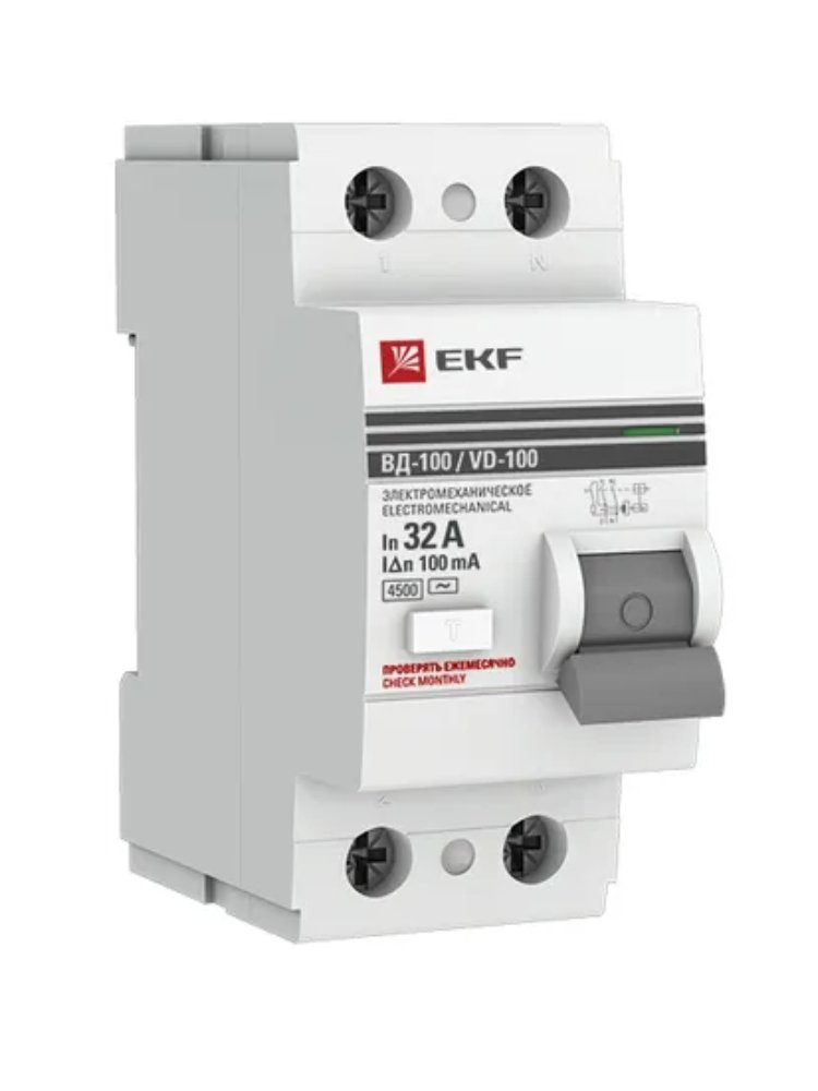 Автомат дифференциальный УЗО ВД-100 2P 32А 30мА EKF PROxima