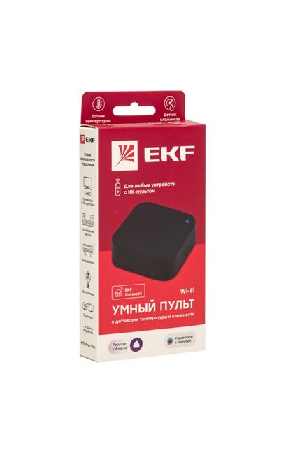 Умный пульт EKF Connect позволяет управлять любыми устройствами, у которых есть свой ИК-пульт, через приложение и через голосовые помощники Алису от Яндекса и Марусю от VK. Примеры устройств, которыми можно управлять - кондиционеры, телевизоры, музыкальные центры. В умный пульт встроены датчики температуры и влажности, что позволяет не только видеть эти параметры в приложении EKF Connect, но и создавать автоматические сценарии, например, чтобы кондиционер включался, когда температура превышает заданное значение, а умная розетка с увлажнителем включалась, когда влажность становится слишком низкой. Wi-Fi пульт управления: дистанционное включение/выключение приборов, быстрая настройка, работает на расстоянии до 10 м, интеграция в умный дом.