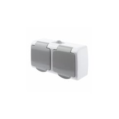Двойная розетка с заземлением и защитой IP54, 16А. Идеальна для влажных и пыльных помещений. Надёжность, безопасность и простой монтаж.