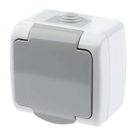 Влагозащищенная розетка 16А с заземлением, IP54, накладная, подходит для подключения электрооборудования в сырых и пыльных помещениях.