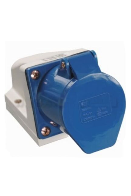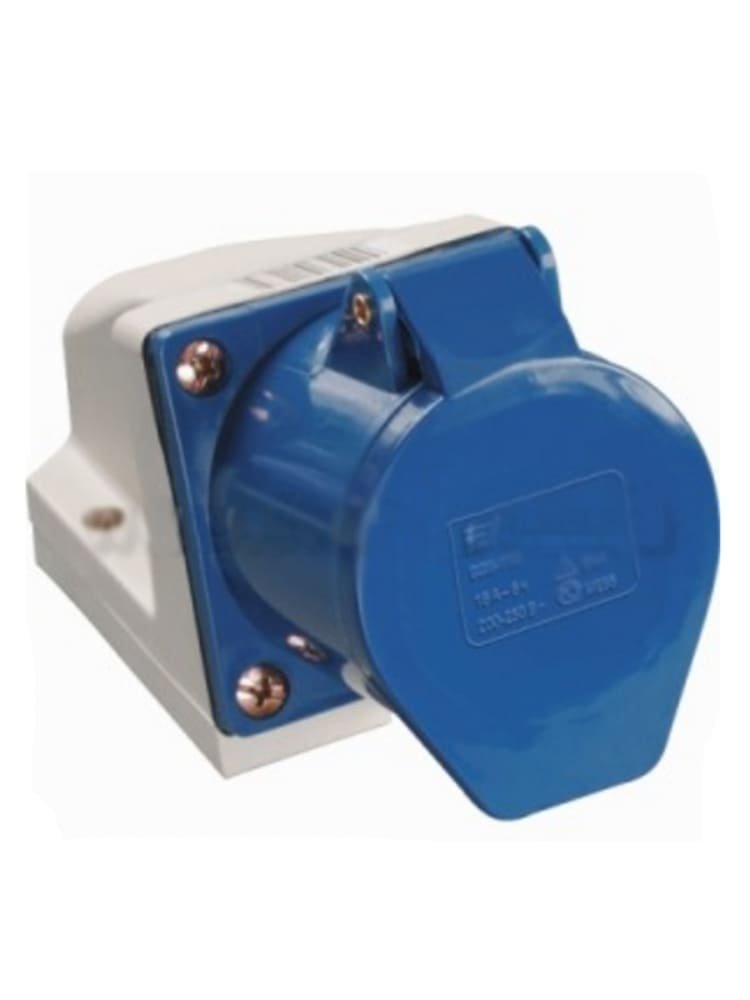 Влагозащищённая стационарная розетка 32А 220В, 2Р+РЕ, IP44, прочный корпус, легко монтируется, идеальна для стройплощадок и мастерских.
