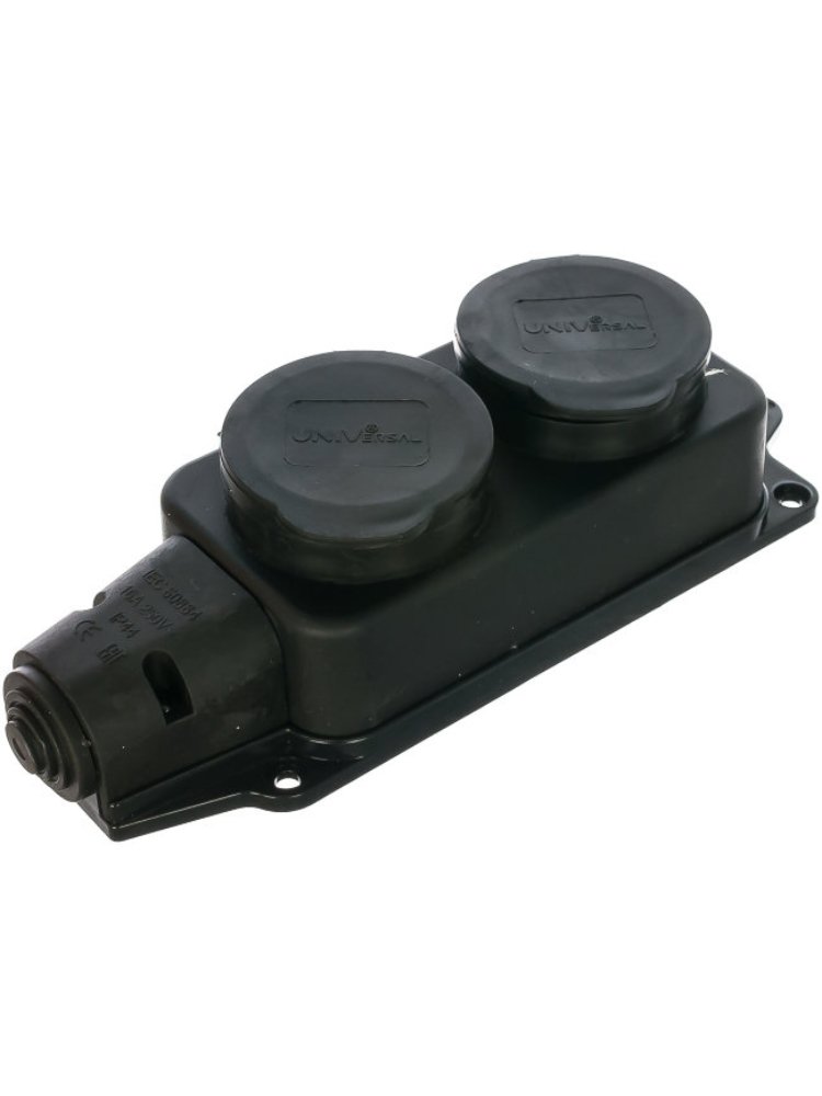 Надежная двойная розетка с заземлением и повышенной влагозащитой IP44 — идеальный выбор для электрического подключения в гараже, мастерской, на строительной площадке, а также во влажных и открытых помещениях. Благодаря прочному каучуковому корпусу и защитной крышке розетка устойчива к ударам и агрессивным условиям эксплуатации.