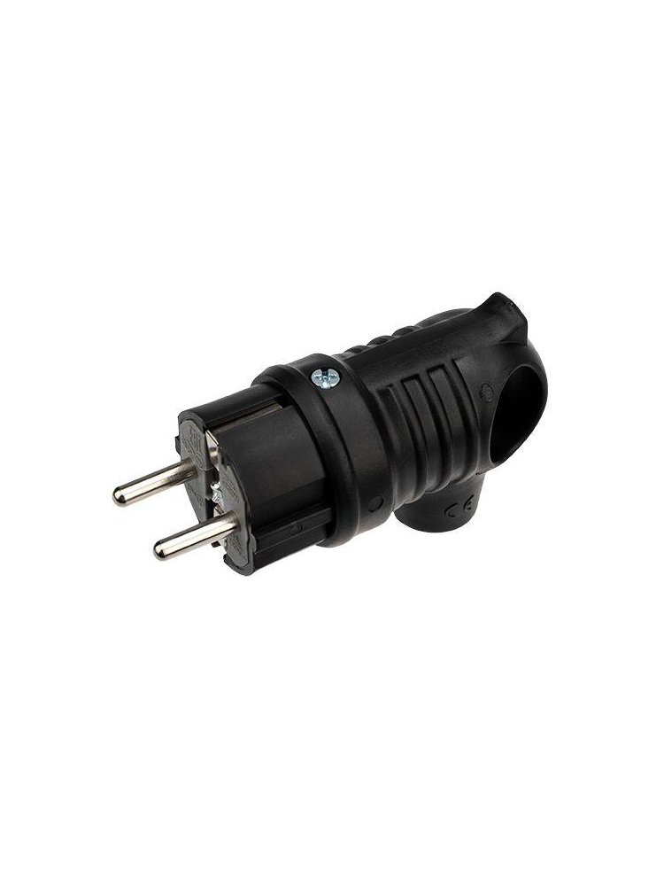 Надёжное решение для безопасного подключения электроприборов в сложных условиях – эргономичная угловая каучуковая вилка с кольцом и заземлением, подходящая для интенсивной эксплуатации на стройке, в мастерской и при работе на улице.