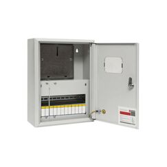 Щит на 12 модулей с местом для 3-фазного счетчика, надежный металлический корпус, степень защиты IP31 — для безопасной организации электросети.