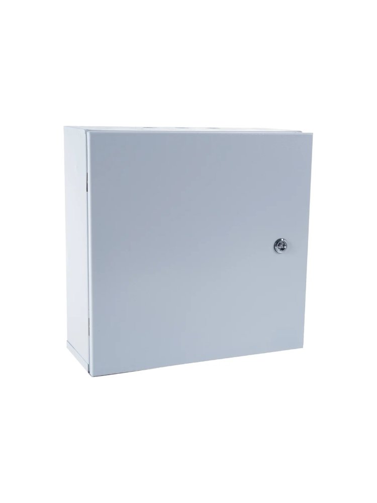 Металлический корпус 400×400×155 мм, IP31, комплектуется монтажной панелью, устойчива к коррозии. Подходит для размещения электрооборудования.