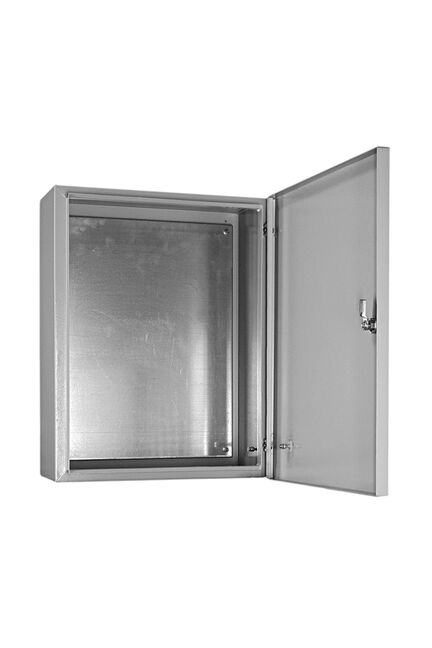 Прочный металлический щит IP54 с монтажной панелью 1000×585×300 мм для безопасной и удобной организации электротехнических систем.