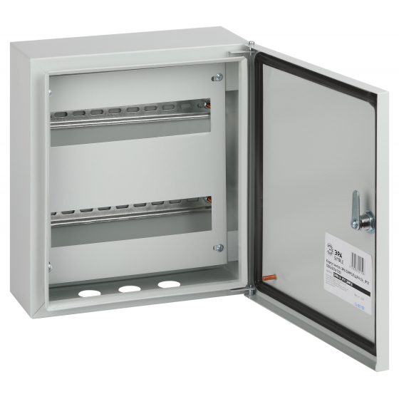 Надёжный навесной электрощит на 24 модуля, защита IP31, габариты 300×310×120 мм, прочная сталь, замок, простая установка и современный дизайн.