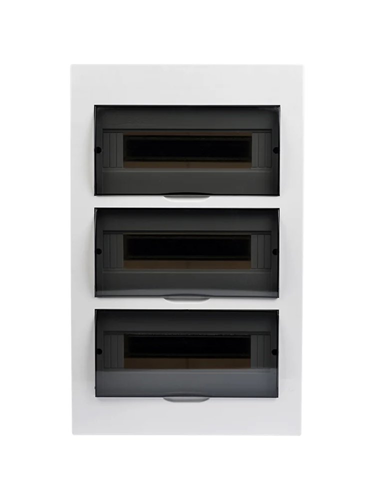 Щит пластиковый навесного типа предназначен для установки 36 модулей и оснащён прозрачной дверцей для визуального контроля состояния автоматических выключателей и другого модульного электрооборудования. Корпус выполнен из негорючего белого ABS-пластика, обладает степенью защиты IP41, что обеспечивает защиту от твердых частиц размером более 1 мм и капель воды, падающих вертикально. Встроенный замок на дверце препятствует несанкционированному доступу. Компактные размеры (300×482×100 мм) позволяют разместить щит как в жилых, так и в общественных помещениях без ущерба интерьеру.