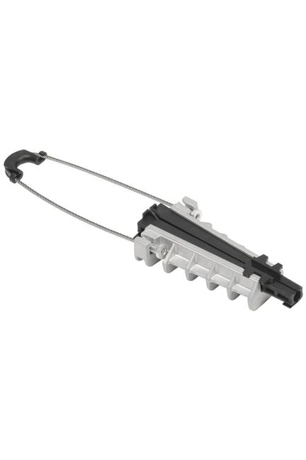 Зажим анкерный предназначен для натяжного крепления изолированной несущей жилы провода СИП-2 на опорах ВЛ и различных сооружениях. Установка зажима производится без применения инструментов. Корпус зажима изготовлен из алюминиевого сплава; вставка, клинья и хомут – из пластмассы, армированной стекловолокном. Тросик зажима изготовлен из нержавеющей стали, и имеет шаровые крепления на обоих концах для удобства монтажа и надежной фиксации. Зажим устойчив к УФ излучению, повышенной и пониженной температуре, к тепловому и световому воздействию солнечной радиации. Мощный анкерный зажим для проводов 50-70 мм², выдерживает до 1500 кг, гарантирует быструю и безопасную фиксацию на ЛЭП и стройплощадках.