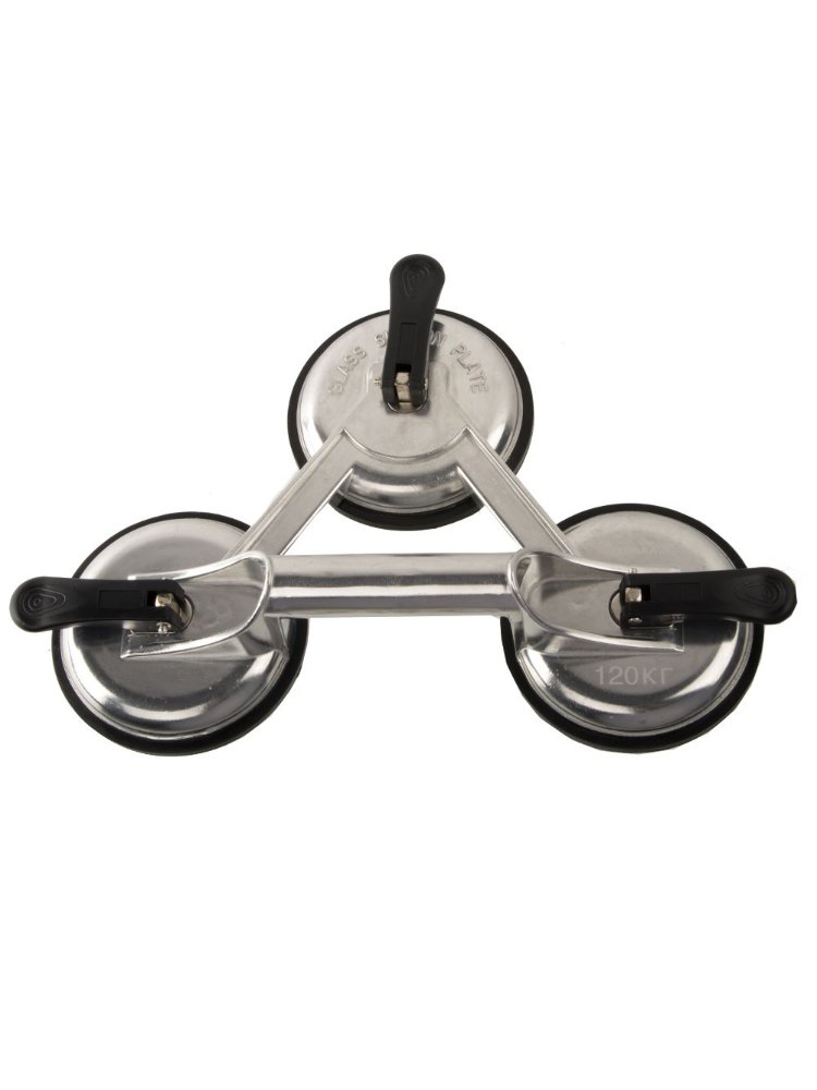 Удобное и надежное решение для монтажа и перемещения стекла, зеркал, керамической плитки и других гладких поверхностей; выдерживает нагрузку до 120 кг и оснащен тремя мощными присосками для повышенной устойчивости.