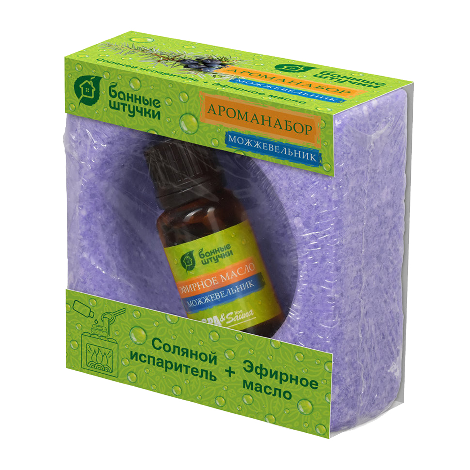 Набор с соляным испарителем и маслом можжевельника для ароматизации и оздоровления воздуха в бане. Природная польза, простой уход.