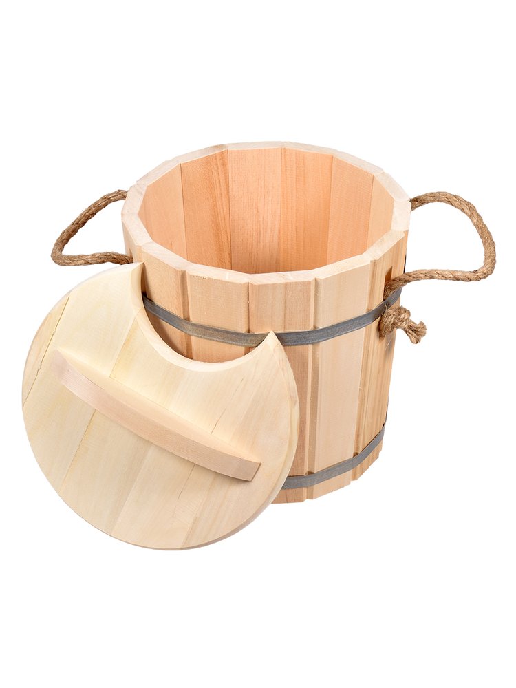 Деревянный запарник 8 л с крышкой — для правильного запаривания веников, ароматизации воды и удобства в уходе. Легкий, прочный и экологичный.