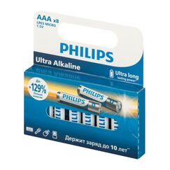 Батарейки Philips представляют собой набор из 4 алкалиновых батареек типа AA с напряжением 1,5V. Они идеально подходят для использования в энергоемких устройствах, таких как электронные игрушки и портативные аудиоплееры. Батарейки AAA Ultra Alkaline: высокое напряжение 1,5 В, защита от протечек, надежная работа инструментов и техники при ремонте и отделке.