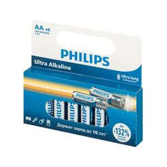 Батарейки Philips представляют собой набор из 8 алкалиновых батареек типа AA с напряжением 1,5V. Они идеально подходят для использования в энергоемких устройствах. Алкалиновые батарейки AA, 8 шт., для инструмента и бытовой техники, надежная работа, высокая ёмкость и защита от протечек.