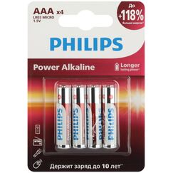 Батарейки Philips представляют собой набор из 4-х алкалиновых батареек типа AAА с напряжением 1,5V. Они идеально подходят для использования в энергоемких устройствах. Щелочные батарейки AAA, 1,5В, 4 шт, повышенный срок службы и стабильное питание для инструментов и оборудования даже при интенсивной нагрузке.
