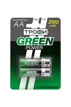 Аккумулятор никель-металлгидридный. Емкость 2100 мАч. Типоразмер АА. NiMH аккумуляторы 2100 мАч, 1.2 В, GREEN POWER, 2 шт — длительная работа, многократная перезарядка, экобезопасность для инструментов и техники.