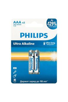 Батарейки Philips представляют собой набор из 2-х алкалиновых батареек типа AAА с напряжением 1,5V. Они идеально подходят для использования в энергоемких устройствах, емкость1250 мА·ч Мощные алкалиновые батарейки AAA, 2 шт., обеспечивают долговременное питание инструментов и электронной техники на стройплощадке и в быту.