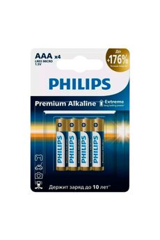 Батарейки Philips представляют собой набор из 4-х алкалиновых батареек типа AAА с напряжением 1,5V. Они идеально подходят для использования в энергоемких устройствах. Щелочные батарейки AAA, 1,5В, 4 шт, повышенный срок службы и стабильное питание для инструментов и оборудования даже при интенсивной нагрузке.