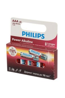 Батарейки Philips представляют собой набор из 8 алкалиновых батареек типа AAА с напряжением 1,5V. Они идеально подходят для использования в энергоемких устройствах. Надежные щелочные батарейки AAA, 8 шт. в упаковке. Долго держат заряд даже в энергозатратных инструментах и устройствах, не подводят в работе.