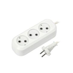 Номинальное напряжение: 250 В; Частота: 50 Гц; Номинальный ток: 10 А; Тип провода: ПВС 2x1,0мм2; Материал корпуса: АБС-пластик; Климатическое исполнение: УХЛ-3; Степень защиты от влаги и пыли: IP-20; Цвет: белый. Удлинитель на 3 розетки, 3 метра, без заземления, 10А — оптимально для подключения нескольких электроприборов дома, на даче, в офисе или мастерской.