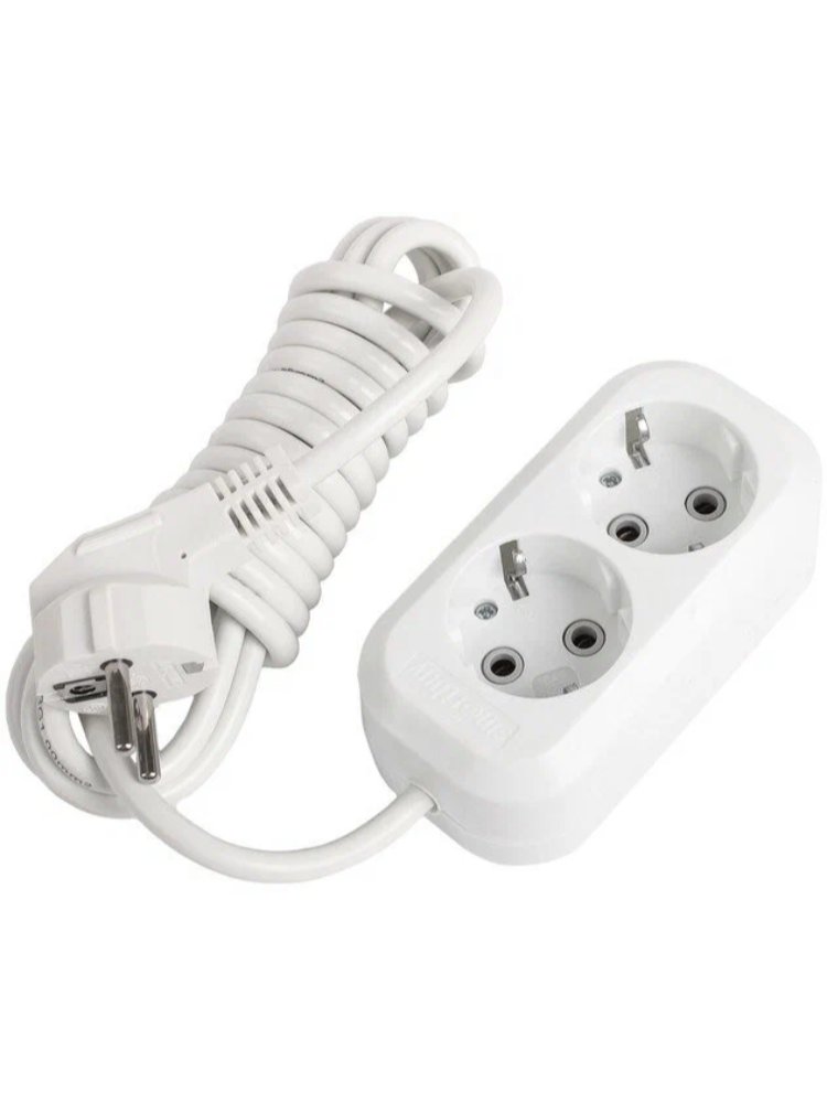 3 гнезда с заземлением, 2 м кабеля (ПВС 3х1 мм²), ток 16А — удобно и безопасно для подключения электротехники в доме, офисе или на стройке.