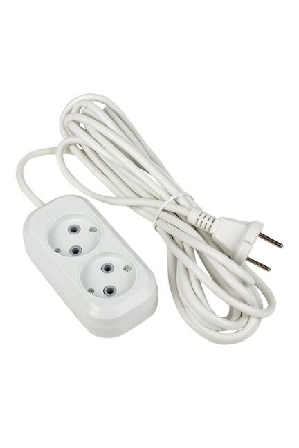 Удлинитель на 2 гнезда, 3 м, 10А, без заземления, для бытового и строительного применения, надёжность и удобство подключения техники.