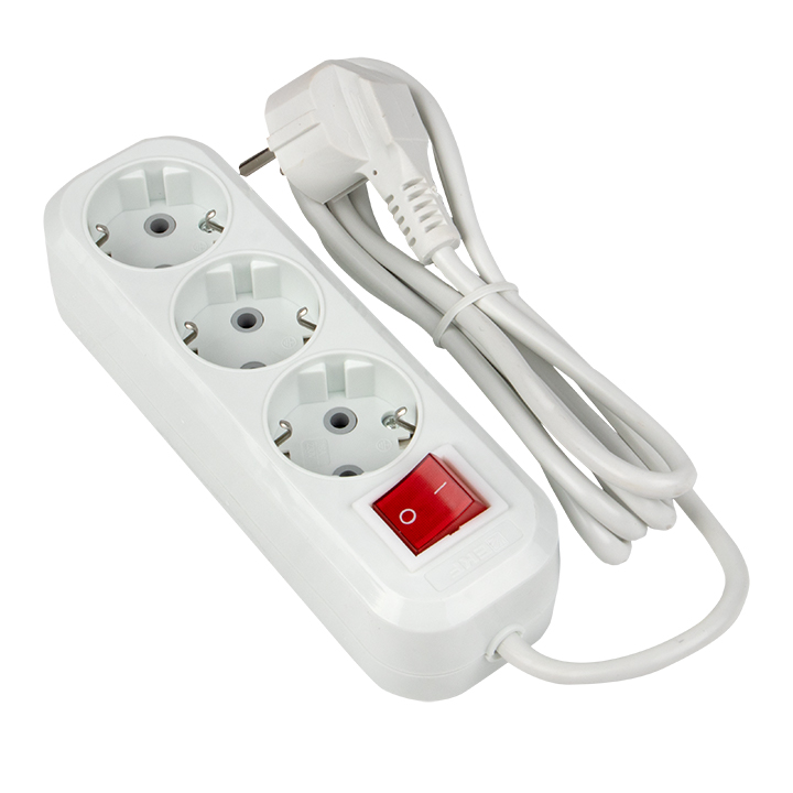 Удлинитель 3 розетки, 3 м, 10A, провод 2х0,75 мм², без заземления — для удобного и безопасного подключения инструментов на объекте.