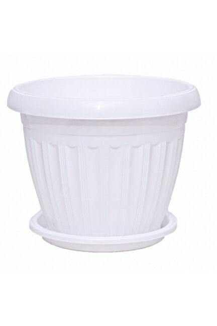Белое пластиковое кашпо на 6,5 л для комнатных и уличных растений, стойкое к влаге и УФ, легко моется, универсальное.