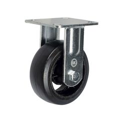 Колеса промышленные неповоротные состоят из колеса (обод – металл, шинка – черная резина) и фиксированной опоры с площадочным креплением. Отличительная особенность – прямолинейная траектория движения. Температурные условия: от -20° до + 60°. Рабочая среда: помещение и открытый воздух. Основные сильные стороны: простота механизма; долговечность; широкая распространенность, обеспечивающая доступность замены. Используются так же как и промышленные (для складских тележек, платформенных тележек, мусорных баков небольшой емкости, для строительных лесов, стеллажей, железной мебели), только с увеличенной нагрузкой. Для больших мусорных контейнеров, для тяжелогрузных тележек для больших лесов. Надёжная и прочная опора 150 мм для перемещения тяжёлых грузов до 400 кг. Устойчива, удобна, подходит для складов и производственных помещений.