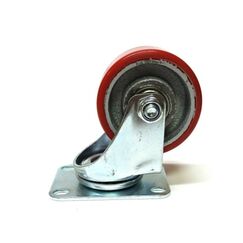 Применяется для установки на тачки и тележки для транспортировки тяжелых и объемных грузов. Колесная опора отлично адаптирована к эксплуатированию в помещениях и на грубой уличной поверхности. Полиуретан, нанесенный на обод, справляется с различными воздействиями внешней среды, в том числе и химическими. Основа обода полиуретанового колеса большегрузной опоры изготовлена из надежного чугуна. Колесо без кронштейна оснащается двухрядным шарикоподшипником и пресс-масленкой, которая обеспечивает своевременное смазывание. В качестве крепления использован кронштейн, который выполнен из специальной стали с оцинковкой. Заводской температурный режим для данной серии варьируется между -35С° и +50С°. Устанавливаются на складские телеги и оборудование для работы внутри склада, по бетонному полу. Покрытие жесткое, катаются в основном по ровной бетонной поверхности. Поворотная колесная опора 125 мм, выдерживает до 280 кг, обеспечивает плавный ход и лёгкий поворот для оборудования на стройке и складе.