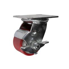 Колесо большегрузное полиуретановое поворотное с тормозом Longway предназначено для оснащения складского, транспортного строительного оборудования и тяжелых механизмов. Шинка выполнена из полиуретана. Материал отличается высокой износостойкостью и большой грузоподъемностью. Колесо отлично переносит динамические, статические и ударные нагрузки, хорошо служит на любых твердых поверхностях. Обод выполнен из чугуна, оснащен роликовым подшипником в оси и смазочным ниппелем. В поворотном механизме установлен двухрядный шариковый подшипник с пресс-масленкой. Кронштейн — сварной, изготовлен из оцинкованной листовой стали. Диапазон температур — от -35ºC до +50ºC. Большегрузная опора 100 мм, выдерживает 230 кг, поворотная, с тормозом. Надежная фиксация и легкое перемещение, для промышленного и строительного оборудования.