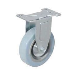Колеса промышленные неповоротные состоят из колеса (обод – металл, шинка – черная резина) и фиксированной опоры с площадочным креплением. Отличительная особенность – прямолинейная траектория движения. Температурные условия: от -20° до + 60°. Рабочая среда: помещение и открытый воздух. Основные сильные стороны: простота механизма; долговечность; широкая распространенность, обеспечивающая доступность замены. Используются для складских тележек, платформенных тележек, мусорных баков небольшой емкости, для строительных лесов, стеллажей, железной мебели. Надёжная опора 75 мм, выдерживает до 50 кг, легко монтируется, защищает пол и облегчает перемещение оборудования и мебели.